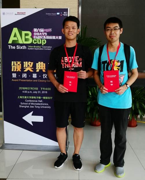 2018年7月31日,在上海交通大学举办的第六届“AB杯”全国大学生自动化系统应用大赛落下帷幕,我校代表队(指导教师:控制学院张继研老师,参赛队员:控制学院15级周鹤洋、代润松)从初赛中脱颖而出,在决赛中获得一等奖。参赛得到了教务处、控制学院、信息技术实验中心、创新创业学院的大力支持。