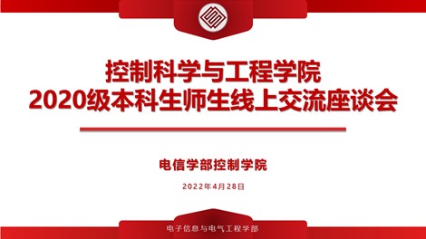 为进一步落实“立德树人”根本任务,推进“三全育人”落实落地,不断开创人才培养新局面,2022年4月28日晚,电信学部控制科学与工程学院面向2020级本科生举办线上师生交流座谈会。控制科学与工程学院院长夏浩老师、副院长汪德刚老师、先进控制技术研究所刘涛老师、自动化研究所秦攀老师与全体2020级自动化专业本科生参加座谈。2020级自动化专业辅导员丁山老师主持座谈会。