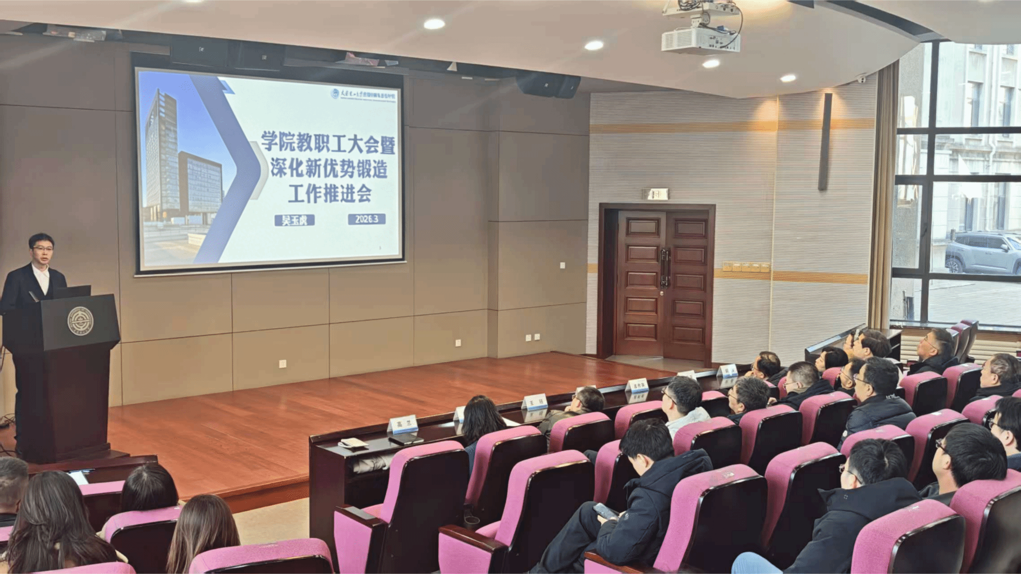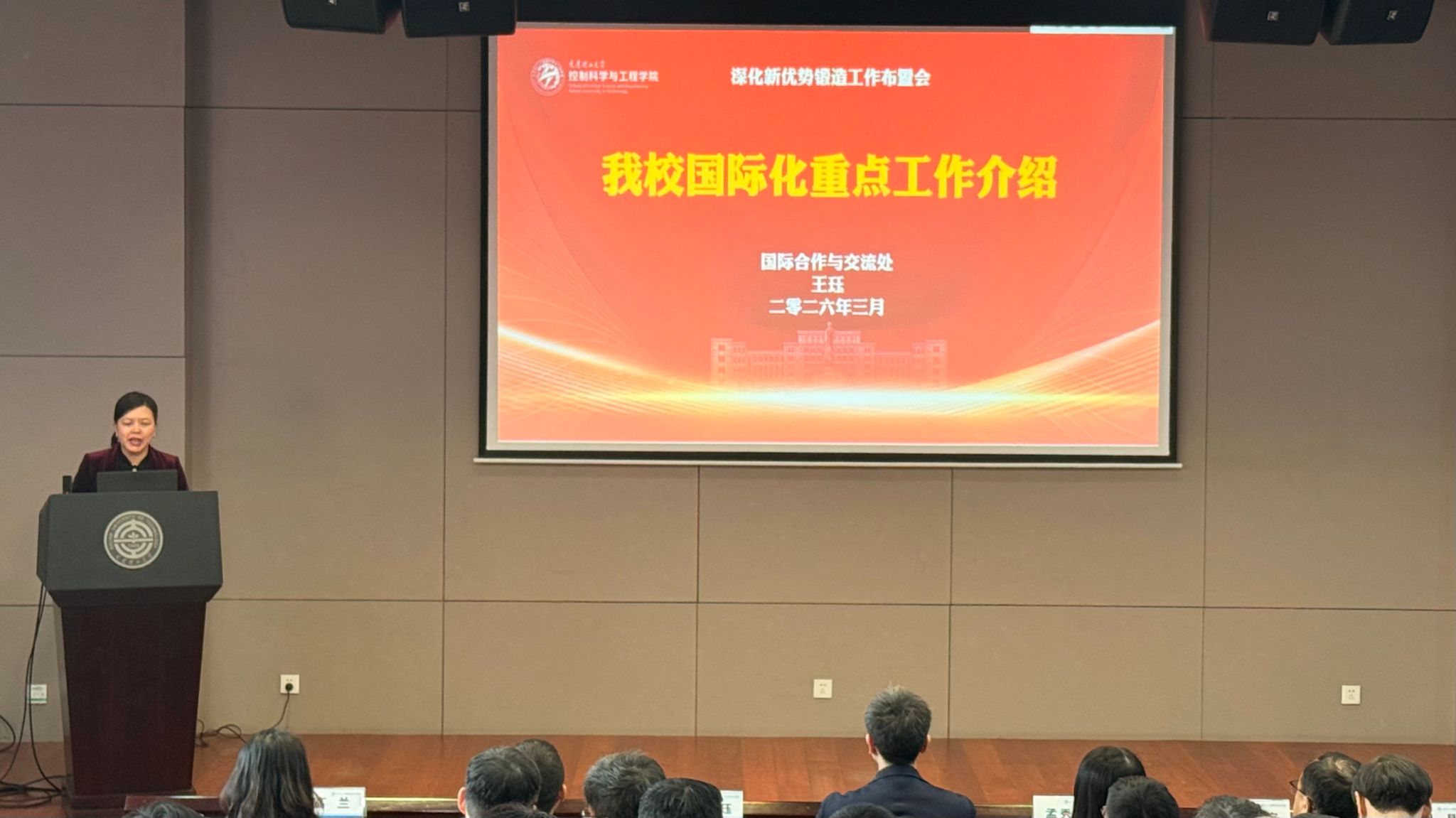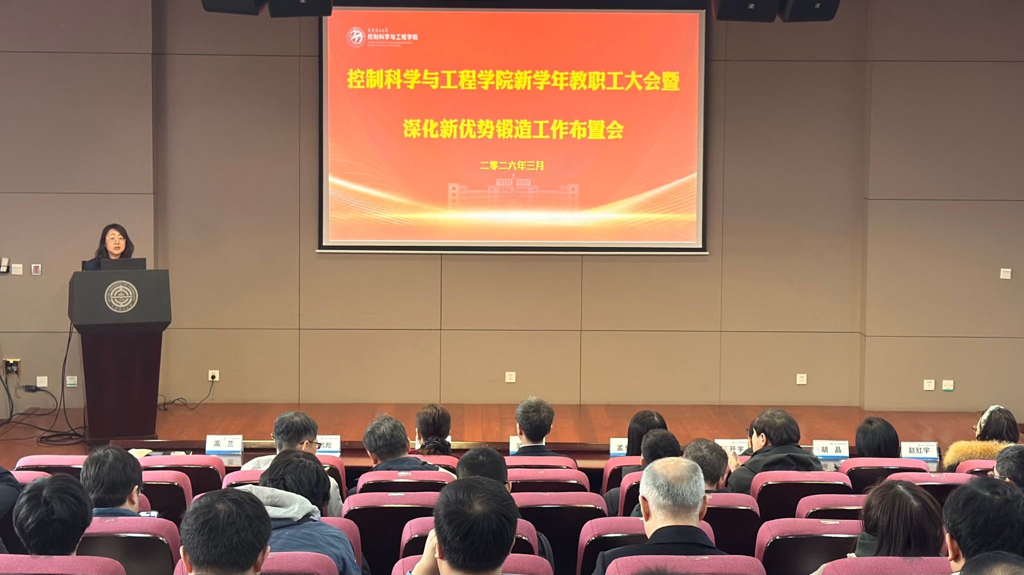 3月18日上午,控制科学与工程学院2026年新学年教职工大会暨深化新优势锻造工作布置会在主楼第一报告厅召开。会议全面对标学校党委“十五五”期间战略谋划,紧扣2026年“数智变革年”主题主线与学校“353”工程任务落地要求,系统部署学院“十五五”发展开局之年各项重点工作,进一步凝聚全院教职工奋进力量,推动学院各项事业高质量发展。会议由学院党委副书记兼副院长高兰主持,学院全体教职工参加会议。