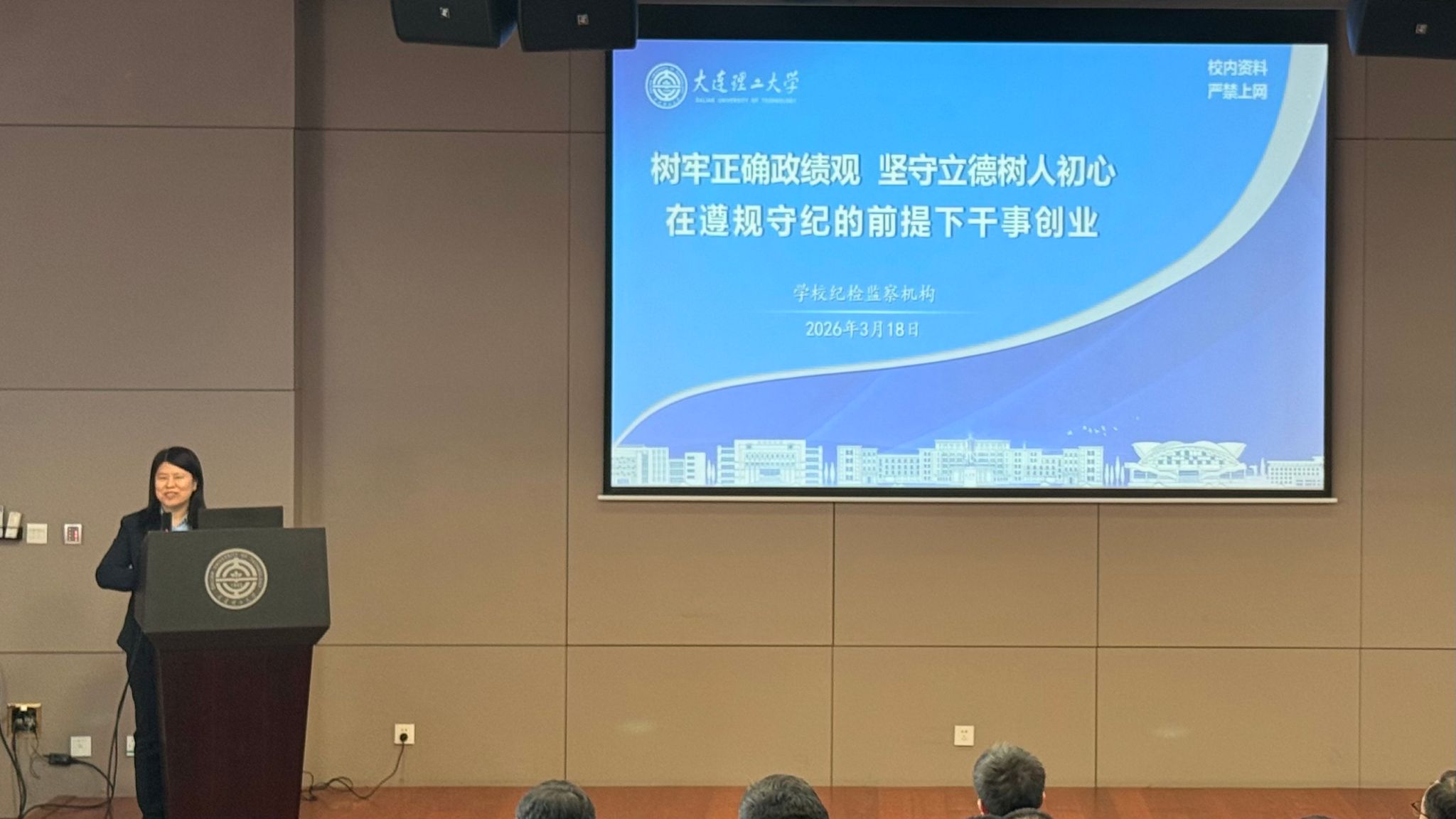 学校纪检监察机构办公室主任孟秀英以《树牢正确政绩观坚守立德树人初心,在遵规守纪的前提下干事创业》为题作全面从严治党会议专题辅导报告。报告紧扣高校立德树人根本任务,深刻阐释了新时代高校教育工作者树立和践行正确政绩观的核心内涵,结合党纪法规要求与典型违纪违法案例,清晰划定纪律红线与行为底线,引导全院教职工严守规矩、坚守初心,在遵规守纪的前提下担当作为、干事创业,为学院事业健康发展筑牢思想防线与纪律底线。