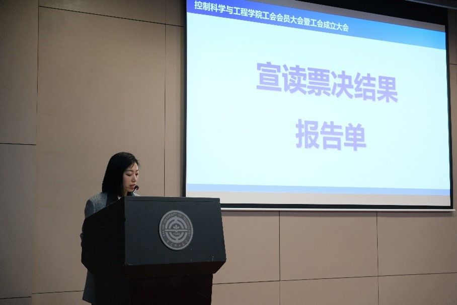 大会在庄严的国歌声中正式拉开序幕。会上,高兰向与会代表介绍了工会筹备情况,并按照工会选举流程,在大会上审议通过了控制科学与工程学院第一届工会委员候选人名单、选举办法、监票人和计票人名单。
