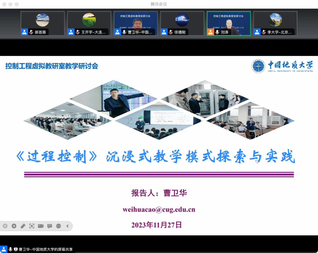第五位报告人—中国地质大学(武汉)曹卫华教授做了主题为“《过程控制》沉浸式教学模式探索与实践”的教学报告。该报告依托国家级一流本科课程《过程控制》建设的探索与实践,汇报 “理论、应用、前沿”的多维度课程内容、“学思行表”融合的教学方法、“层次化、个性化、实用化”的实践教学资源体系,和兼具“系统感、亲切感、新鲜感”的教材建设,阐释教学内容、教学方式、教学资源如何互相支撑,形成沉浸式的教学模式,培养学生的控制工程学科核心素养和高阶能力。