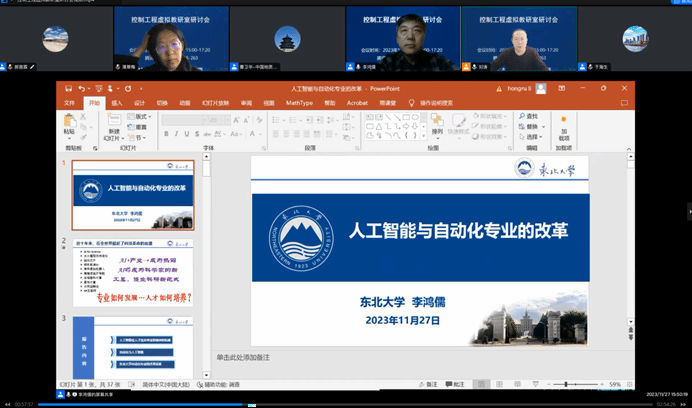 随后,东北大学李鸿儒教授做了主题为“人工智能与自动化专业的改革”的教学报告。该报告从人工智能的基本概念和发展出发,介绍了人工智能驱动的自动化的发展,分析了自动化专业的改革需求,进一步,从自动化专业课程体系方面介绍了东北大学自动化专业的改革探索。