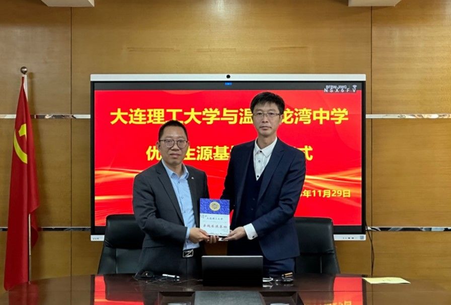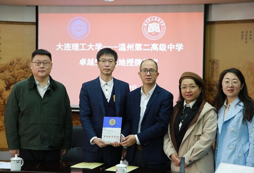 温州市龙湾中学是浙江省一级普通高中特色示范学校,近年来办学成果显著。在龙湾中学,吴玉虎向龙湾中学副校长叶忠秋、部分骨干教师介绍了大工整体情况,欢迎龙湾中学优秀学子报考大工。叶忠秋介绍了龙湾中学校史校情、办学成果。双方签订《人才培养合作协议》,并参加“卓越生源基地”授牌仪式。