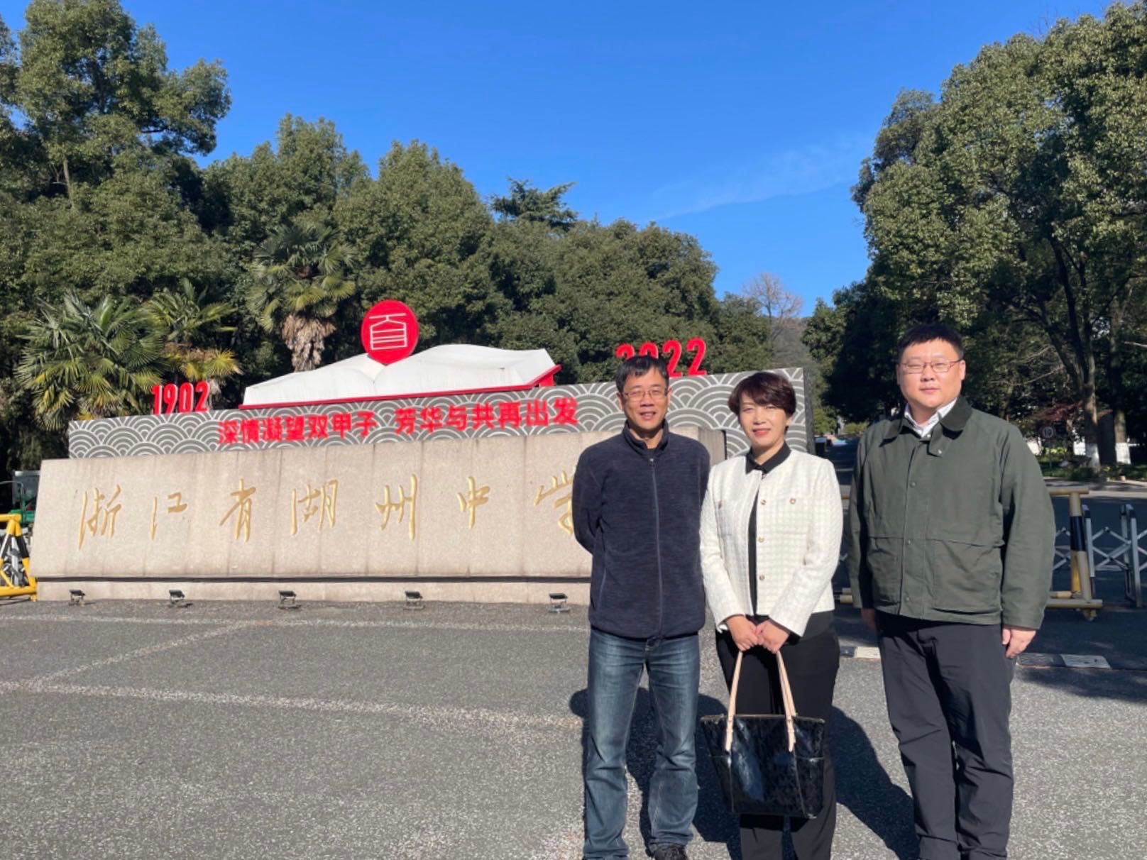 在湖州中学,杨雪岩一行与湖州市教育局党委委员、副总督学,湖州中学党委书记、校长蔡轶佳亲切交谈,并与湖州中学副校长竺斌就人才培养等方面进行深入交流。