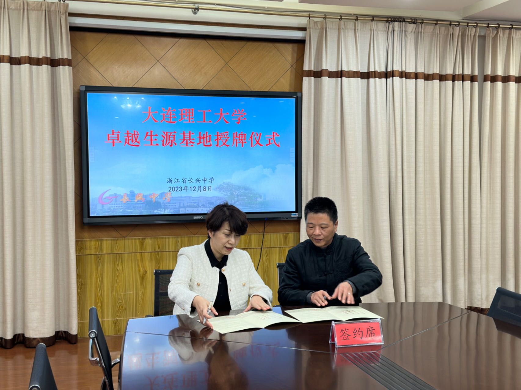 12月8日下午,杨雪岩一行走访浙江长兴中学,与长兴中学党委副书记奚伟恕等领导、老师开展座谈交流。双方签订《人才培养合作协议》,并举行“卓越生源基地”授牌仪式。