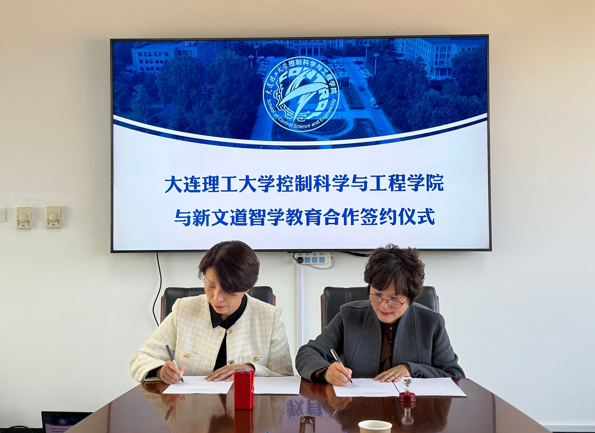10月16日上午,控制科学与工程学院、大连新文道智学教育科技有限公司(以下简称“大连新文道”)合作协议签署仪式在海山楼A1101顺利举行。大连新文道总经理代友蓉、经理郭志超、王瑞、控制科学与工程学院党委书记杨雪岩、学院党委副书记兼副院长高兰出席仪式,活动由控制学院辅导员韩愉主持。