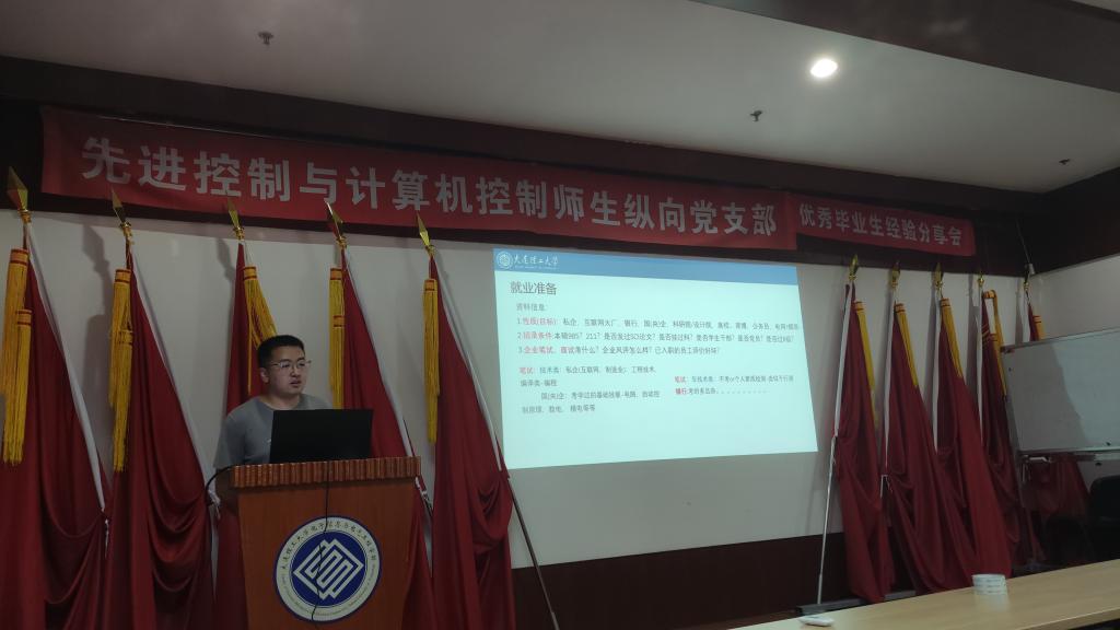 今日,为响应学校组织开展基层党组织“一融双高”建设,开展“加速跑新征程”,充分发挥党员模范作用,先进控制与计算机控制研究所在海山楼二楼会议室成功举办了一场主题为“优秀毕业生及教师就业分享会”的支部大会。会议开始,支部书记刘涛老师进行发言,阐明本次会议议程与主题,并邀请心理健康指导孙效里老师以及学办李嘉老师参会指导。