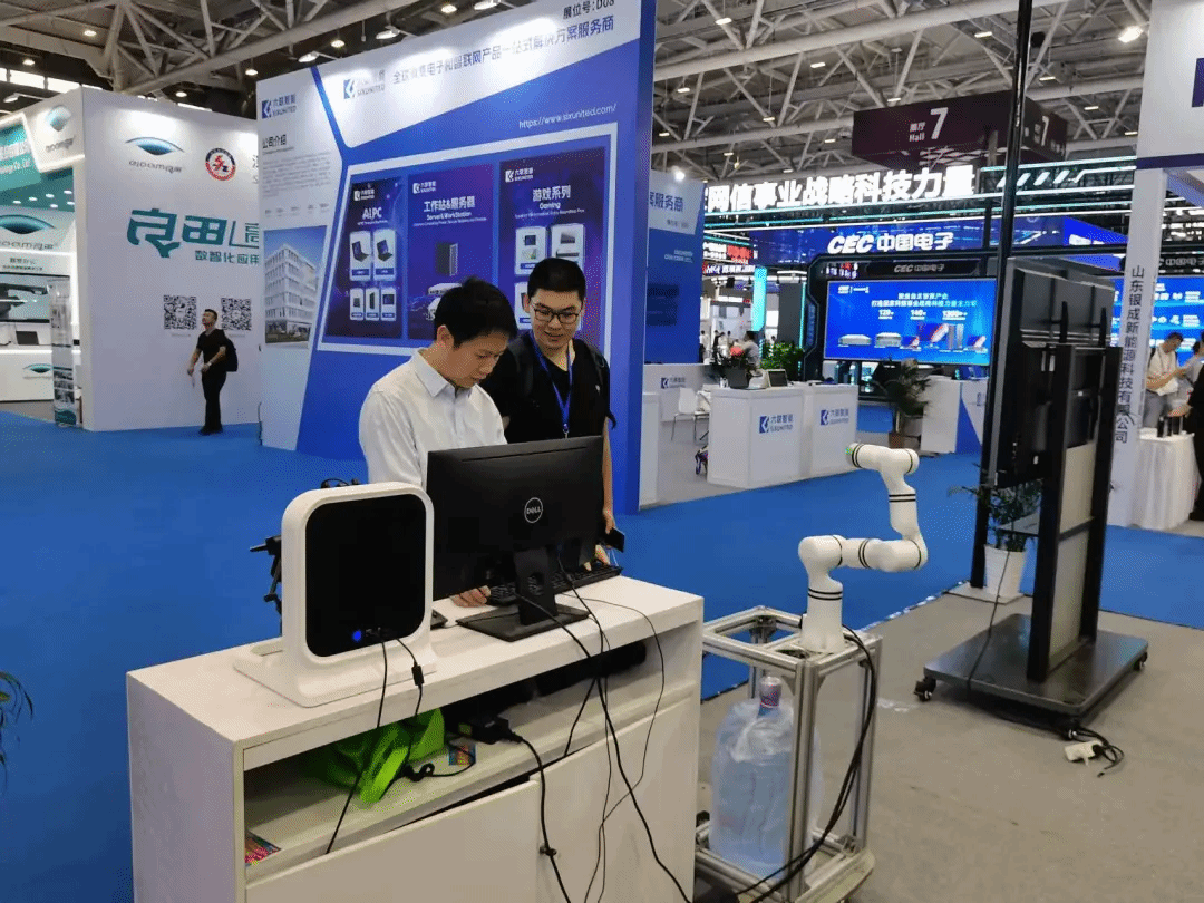 安诺机器人(深圳)有限公司展出了桌面级机械臂及Ai机器,在与科研人员交流之后,实践团成员对该项技术有了深刻的认识:“这款桌面级机械臂及Ai机器,以人工智能技术为驱动,以“易操作、高性能、多元化”桌面级机械臂为载体,通过一体化解决方案,能够解决人力短缺、劳动力成本上升等瓶颈问题。”