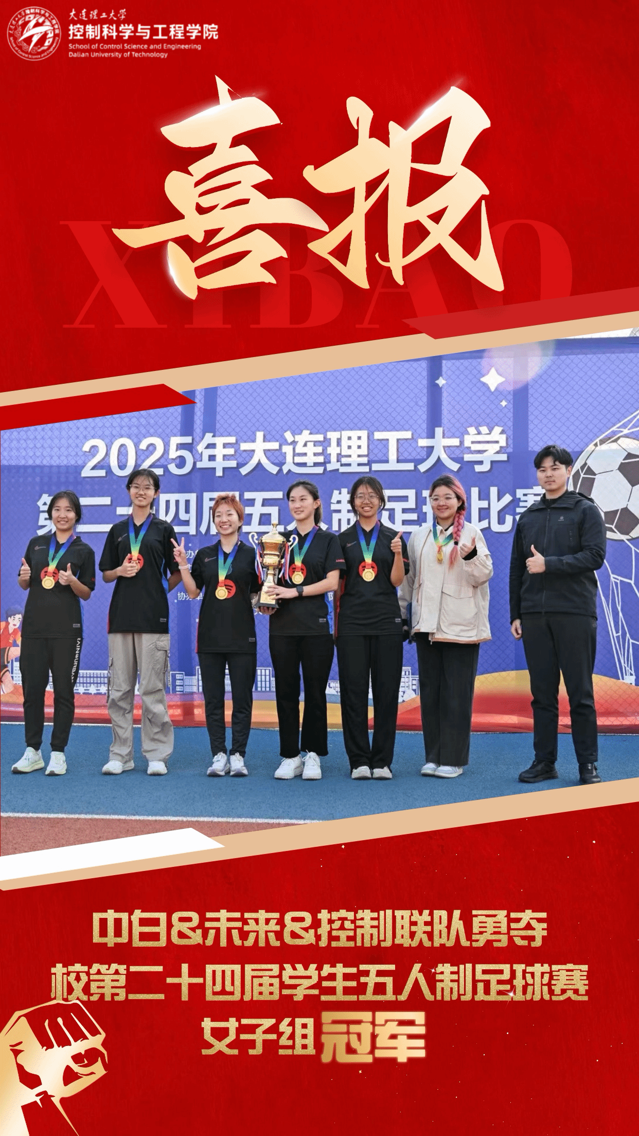 冬日暖阳映照绿茵,大连理工大学第二十四届五人制足球赛圆满收官。控制学院的足球健儿们满怀热爱,以激情与汗水在赛场上奋力拼搏,捷报终传。控制中白未来联队勇夺女子组冠军!控制计科联队斩获男子甲级组亚军!