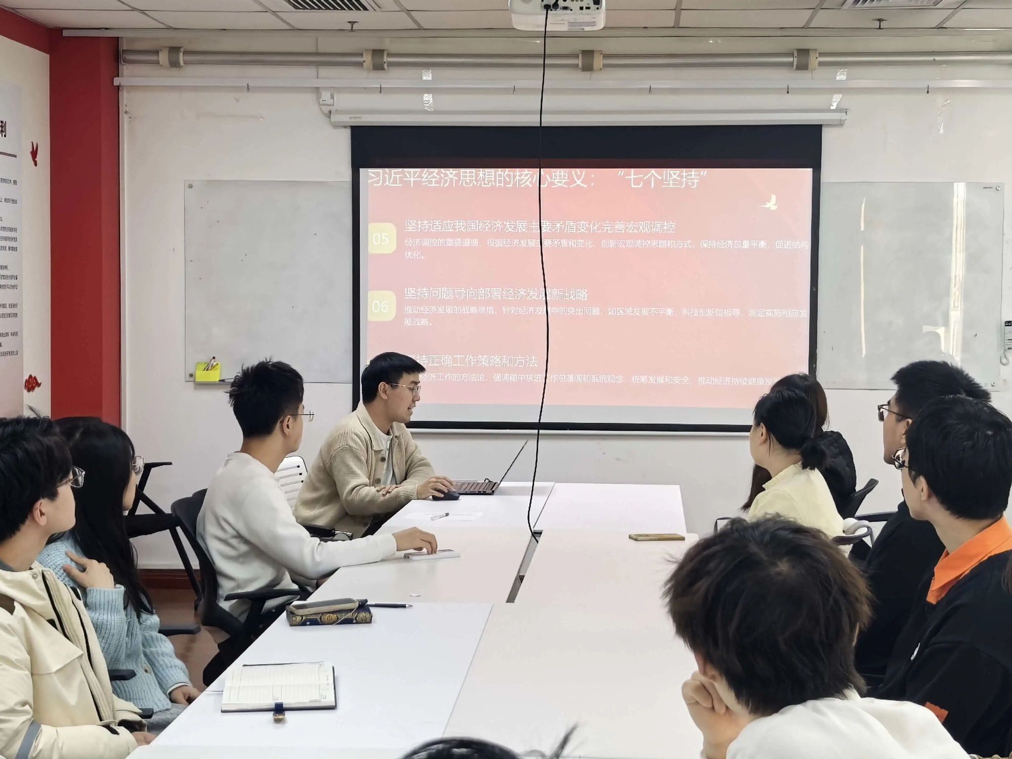 为帮助同学们深刻领会习近平经济思想的核心要义,准确把握中央经济工作会议的精神实质与实践要求,引导青年学生在国家发展大局中找准成长坐标,12月24日,控制学院团委研究生中心于海山楼B1103组织开展“深入学习贯彻习近平经济思想”青年成长沙龙活动。本次活动由研究生辅导员庞俊康担任主讲人。