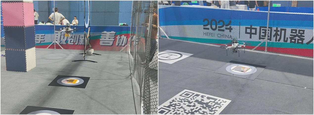 这次大赛中夺得全国冠军的荣耀,归功于参赛团队的不懈努力、持续创新以及勇于拼搏的精神。参赛团队自主研发了高实时、精确的定位与建图算法,并训练了可靠的视觉模型,精心设计了鲁棒控制算法。在决赛的舞台上,我校参赛团队展现了无畏挑战、敢于突破的科技先锋精神。无人机在起飞后快速扫描了二维码,并通过视觉识别精确地完成了在目标靶的识别以及物块投递任务,迅速地完成了圆环的穿越,且精准地着陆在指定的降落点内,以1分15秒且满分成绩勇夺冠军,比赛成绩远优于其他参赛队伍。